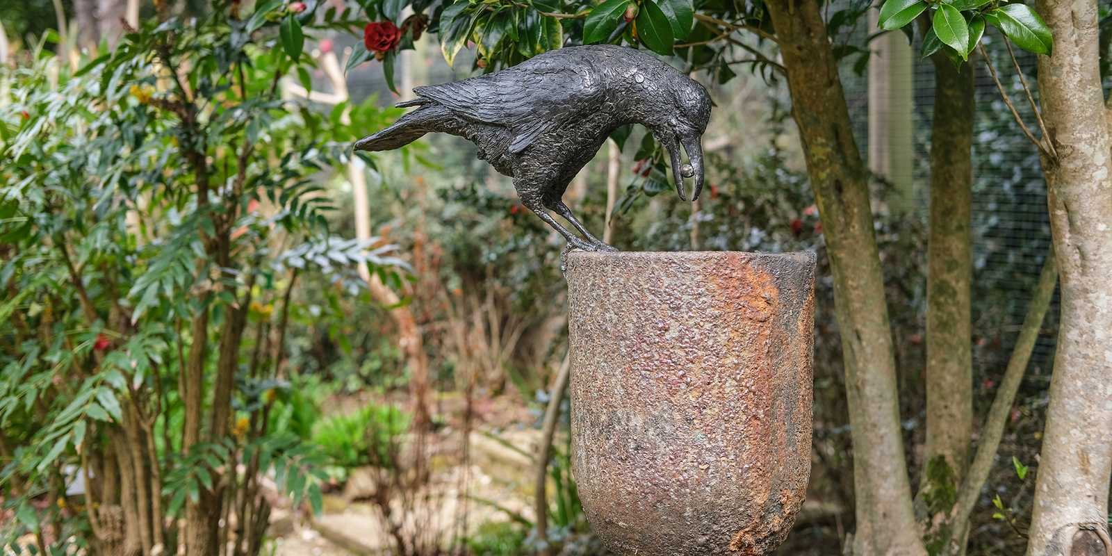 From Aesop's fable, The Crow and the Pitcher, comes this hot cast bronze water feature. Handmade in the UK using ancient techniques, this large garden water feature is a must-have for literature fans.