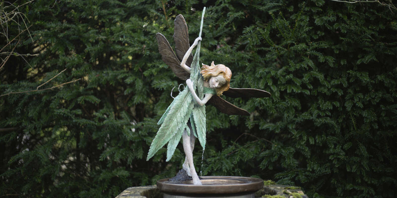 Handmade in the UK, The Willow Fairy bronze garden water feature captures the illustration from Cicely Mary Baker's 1923 book Flower Fairies. This hot cast bronze sculpture will add a sense of literary magic to your outdoor space.