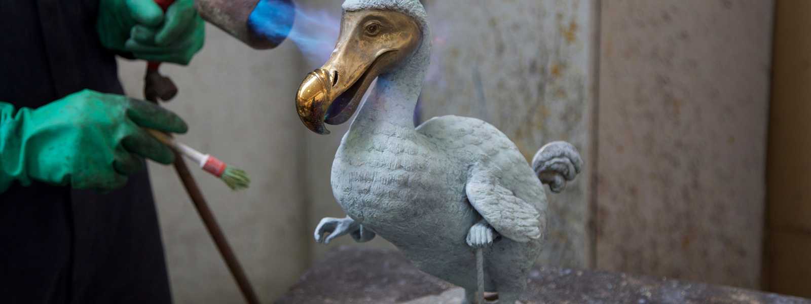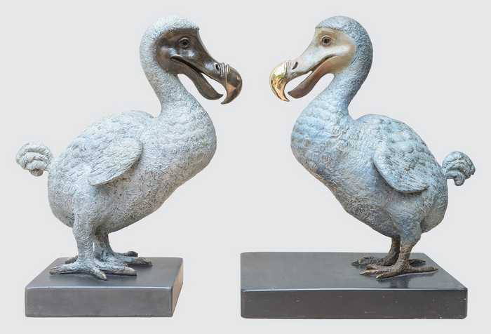 There are a number of differences in the process of creating cold cast and hot cast bronze sculptures. In the example below, the Dodo on the left is cold cast bronze, while the Dodo on the right is hot cast bronze.