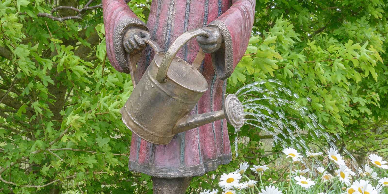 The Barefoot King tilted the watering can and sprinkled the pond surface, creating ripples that reached far and wide.