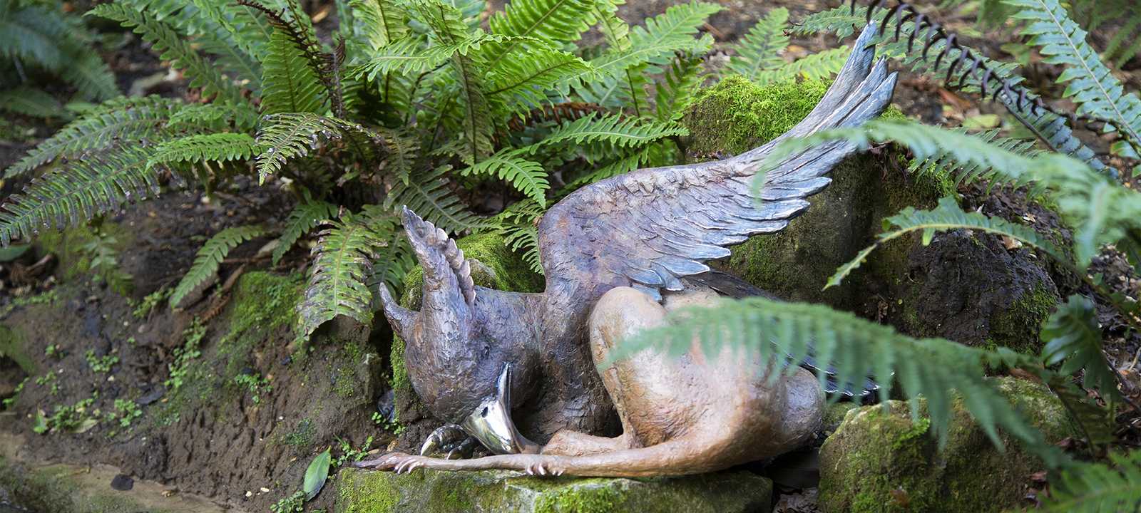 Large Gryphon statue made using hot cast bronze. This Sleeping Gryphon garden sculpture is taken from the pages of Lewis Carroll's classic book, Alice's Adventures in Wonderland. A wonderful handmade garden feature that will last generations.