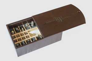 The beautifully finished board is made of Wenge, inlayed with Maple and measures 60 sq. cm. The chess set characters are presented in a matching handmade Wenge and Maple box with a sliding lid, etched with our Robert James logo.