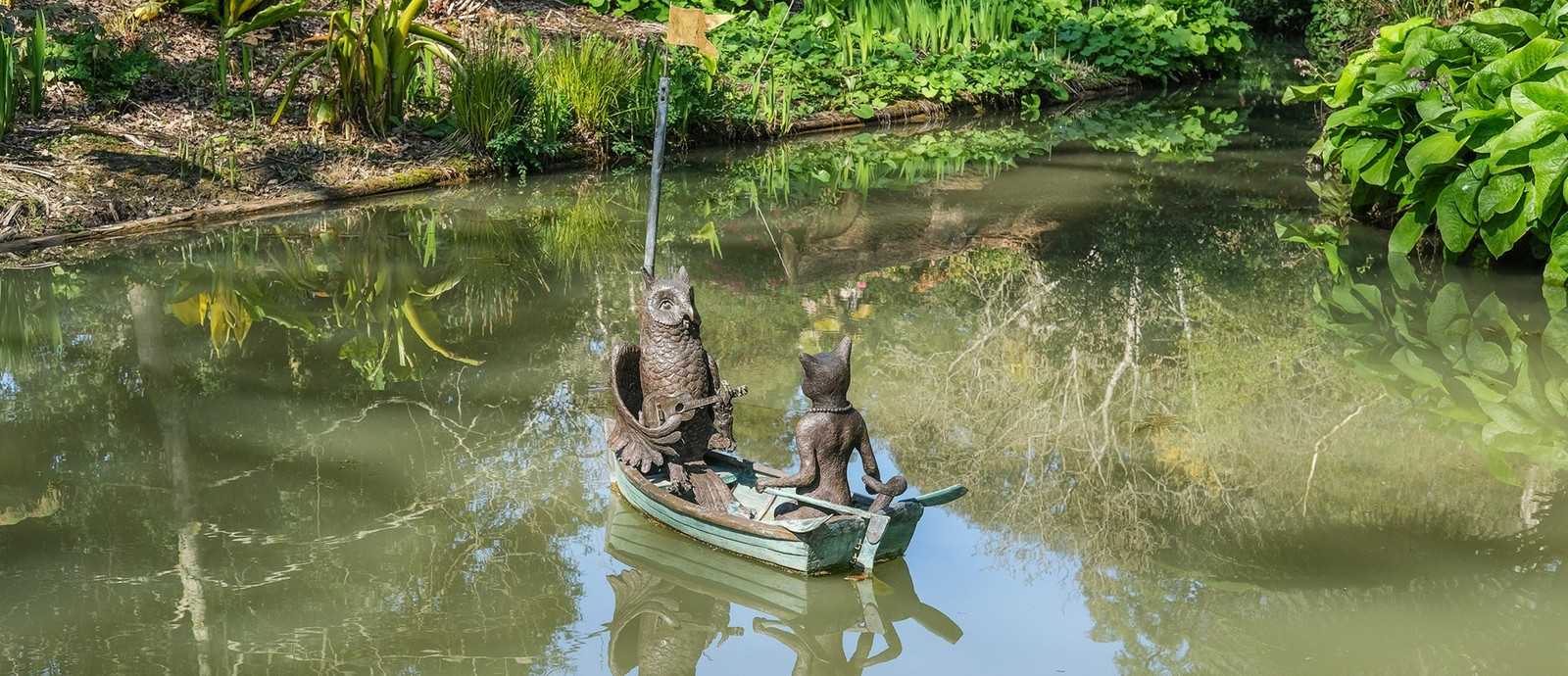 Handmade bronze Owl and the Pussy-cat water feature inspired by the Edward Lear poem of 1871. The beloved literary work is captured beautifully in this hot cast bronze garden water sculpture.