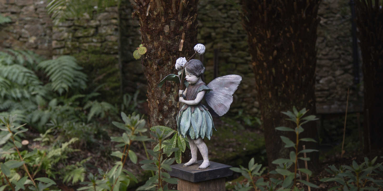 Handmade in the UK, The Clover Fairy bronze garden sculpture captures the illustration from Cicely Mary Baker's 1923 book Flower Fairies. This hot cast bronze statue is a charming addition to any garden space.